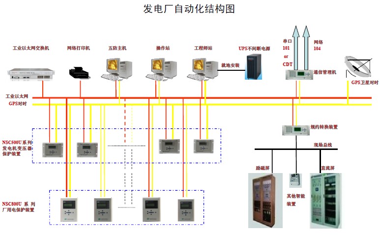 NSC8000火电厂电气自动化系统由监控层、通信层和间隔层组成,间隔层由发变组保护、NSC860系列综合测控装置、NSC800U系列高压保护测控装置及其同期装置、发电机保护、快切装置等配套装置构成。